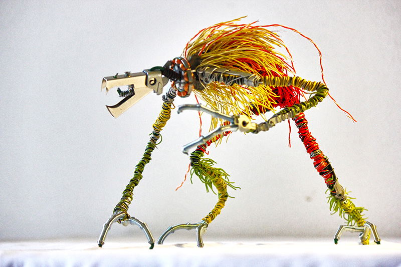 Avec ses sculptures, il promeut dans une démarche écologique, l’upcycling (le réemploi des objets) et l’art recup. « Le but c’est vraiment de se servir de ce que tout le monde a chez soi et jette. Le principe, c’est de redonner vie à la matière première en imaginant des créatures » résume-t-il.